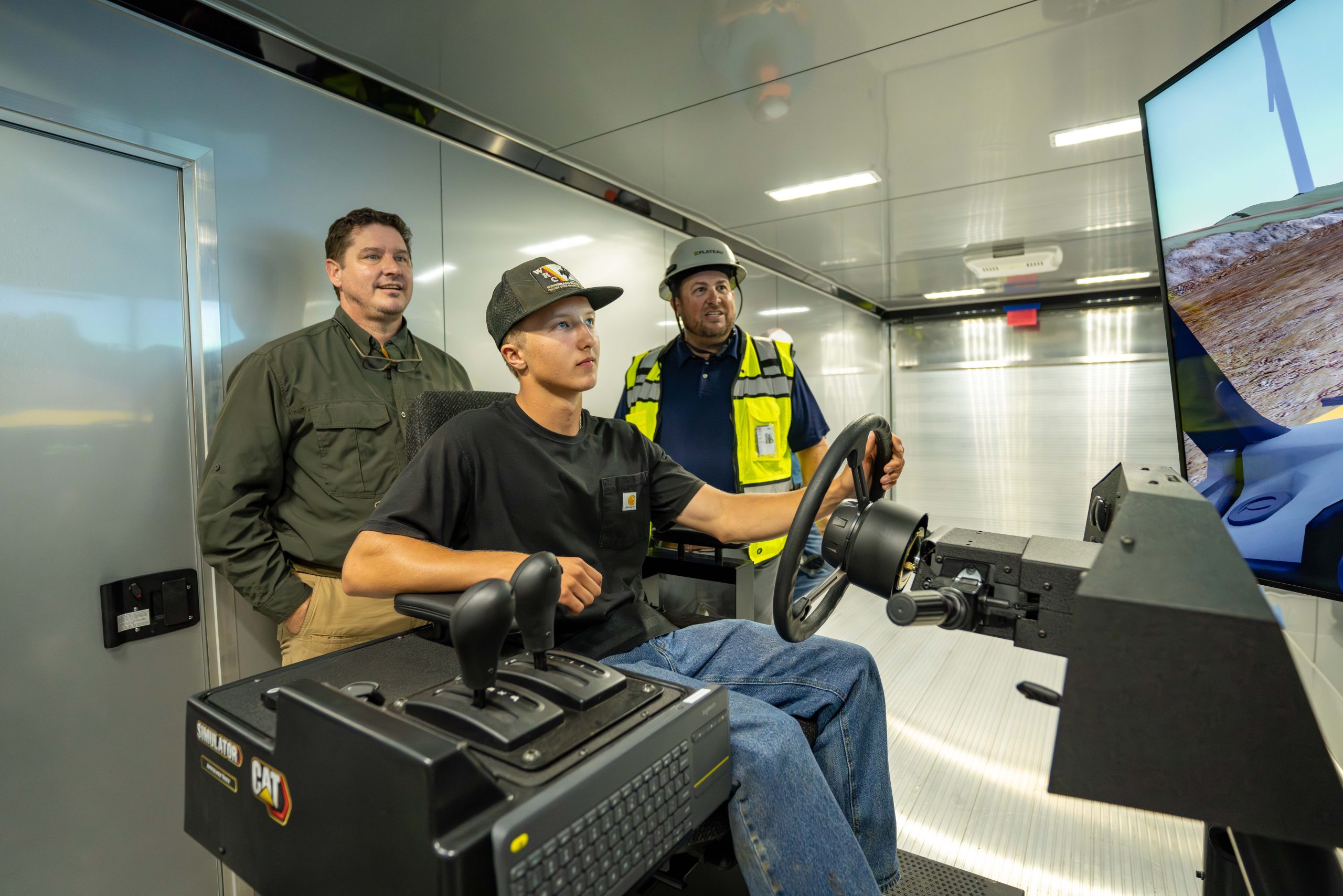 Plateau utilizes three Caterpillar simulators — an articulated truck, a medium excavator, and a mid-sized dozer.